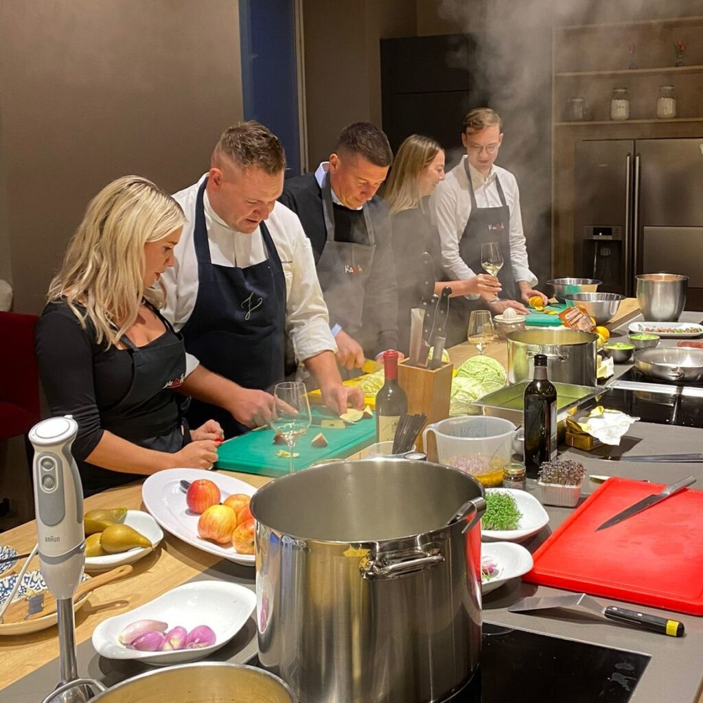 Im Anschluss widmen wir uns dem gemeinsamen Anrichten der zubereiteten Speisen. Gang für Gang – ganz ohne Hektik und genießen den Abend in vollen Zügen.
